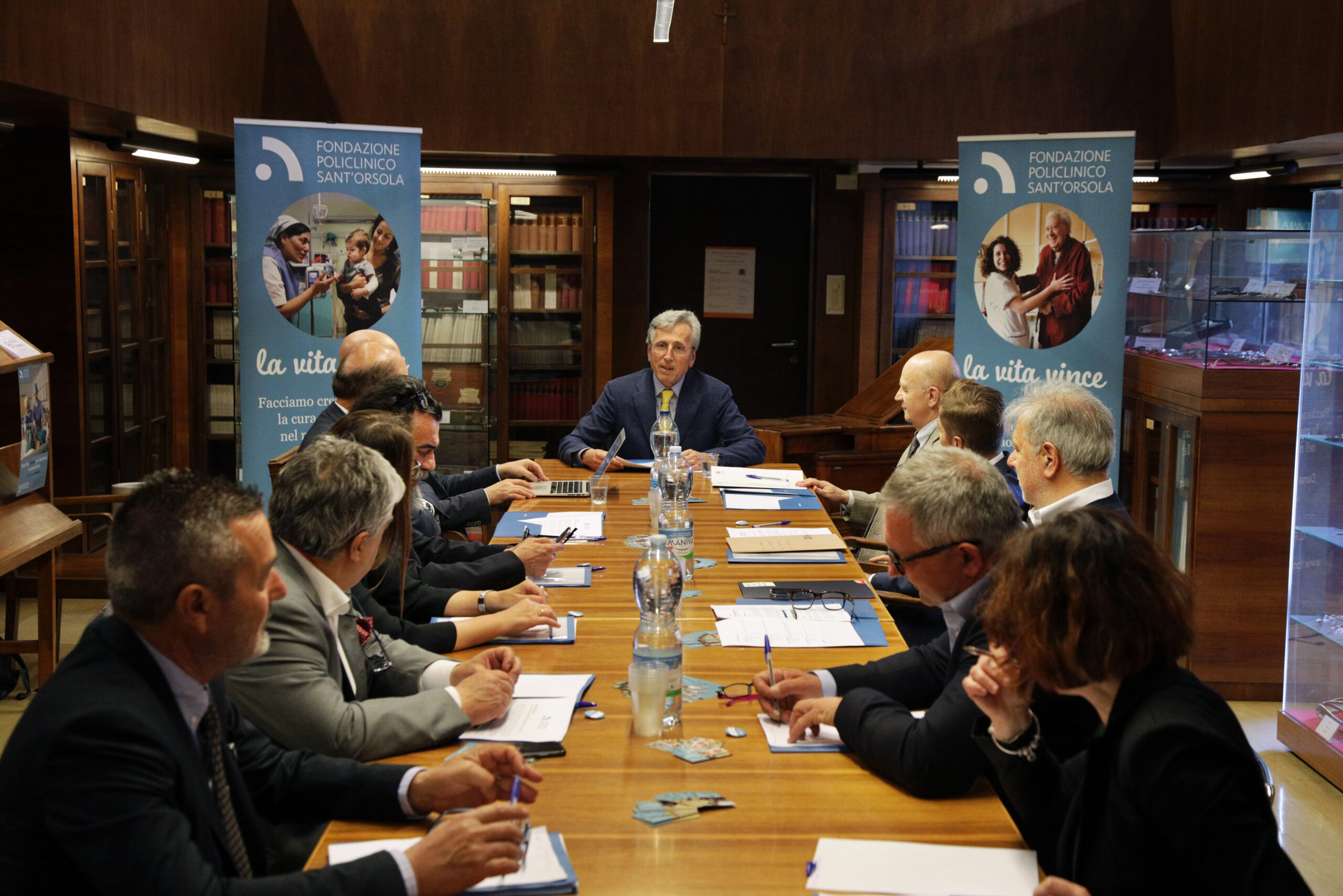 Nella foto: il primo CdA della Fondazione Sant’Orsola, sette anni fa, nella biblioteca storica del Policlinico